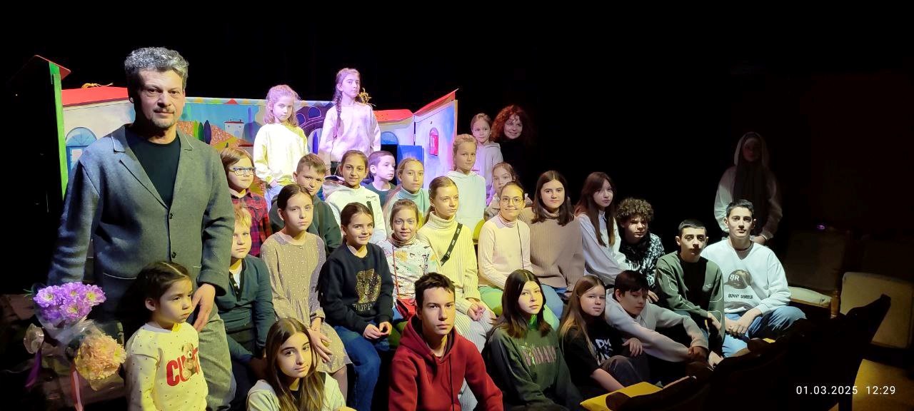 После просмотра спектакля «Любовь к одному апельсину» по мотивам сказочных историй итальянского писателя Карло Гоцци юные зрители с большим вниманием слушали о задачах художника по разработке визуального решения постановки, её стиля, символики.