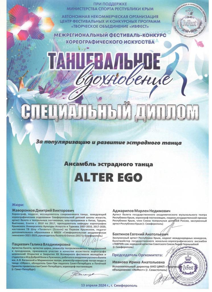 Программа дополнительного образования детей ансамбля эстрадно-спортивного танца «ALTER EGO» предоставляет широкие возможности обучения основам танцевального искусства, дает возможность ввести детей 5–8 лет в мир хореографии, с помощью игровых технологий познакомить с некоторыми хореографическими жанрами, видами и стилями. Программа поможет воспитанникам творчески самовыразиться и проявить себя посредством пластики, ритмики и импровизации.